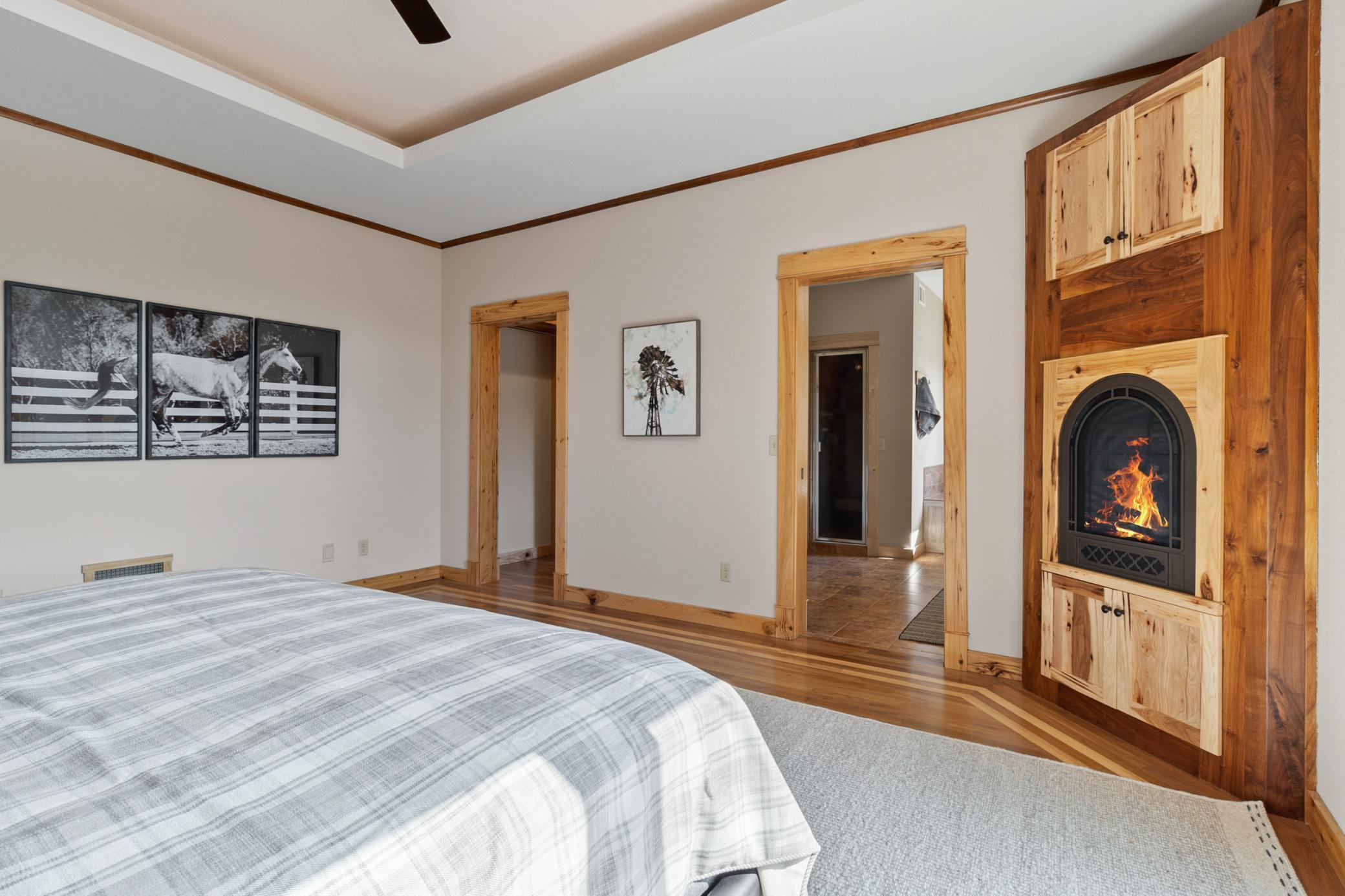 Imagine a few of your favorite things, acreage, picturesque water views, a heated oversized 1,891 square feet pole barn, open concept with vaulted ceilings, screened-in porch, a spacious west-facing deck, multiple gas fireplaces, sweeping panoramic views throughout all levels, and a white picket fence on a private cul de sac. This custom built one level living has so many amenities to love. Custom hickory cabinetry, large west facing maintenance free deck and awesome MN-must have screened in porch. Your main floor owner suite has the large walk-in closet and private fireplace and entrance to your deck. Steam shower and large dual sinks all with the convenience of just steps from the entertaining spaces. 3 bedrooms on one level with 2 more in basement. The lower level custom bar is made from 100 year old barn wood and has cool details. Great heated concrete floors. Outside your custom railroad bridge to your awesome pole barn and tons of land to play with. The possibilities, horse, chickens and fun ahead is almost limitless with these 7.5 acres of land. Store your own boats and toys this winter and enjoy this property all season long.